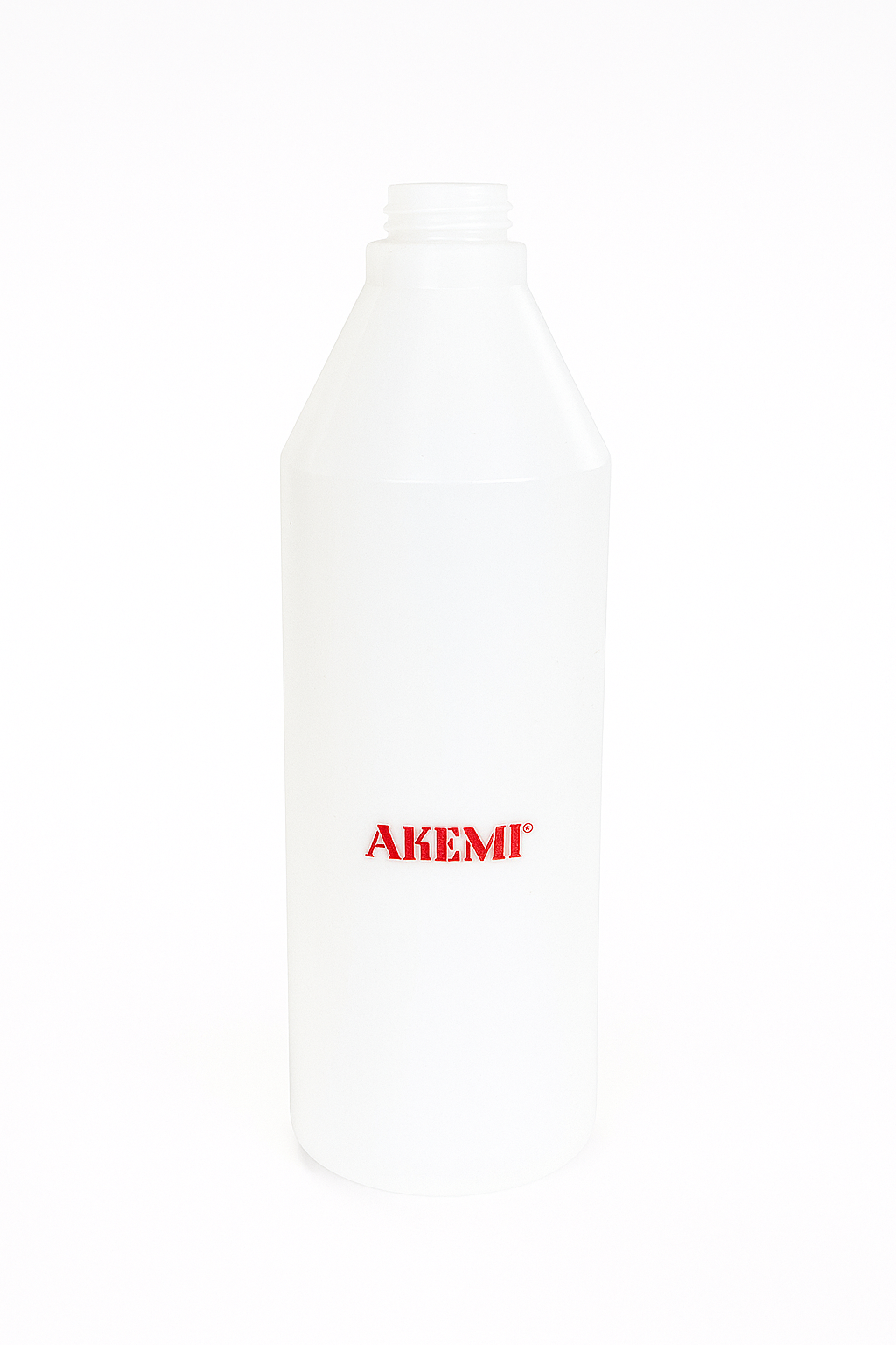 Frasco plástico branco com logo vermelho AKEMI